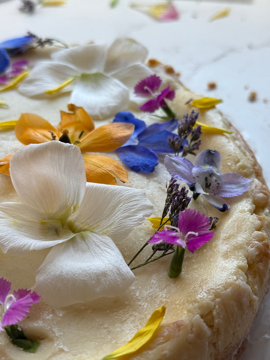 הַכַּרטִיסִים אָזלוּעוגת גבינה של בובי עם פרחים אכילים (איסוף עצמי בלבד - תל אביב)