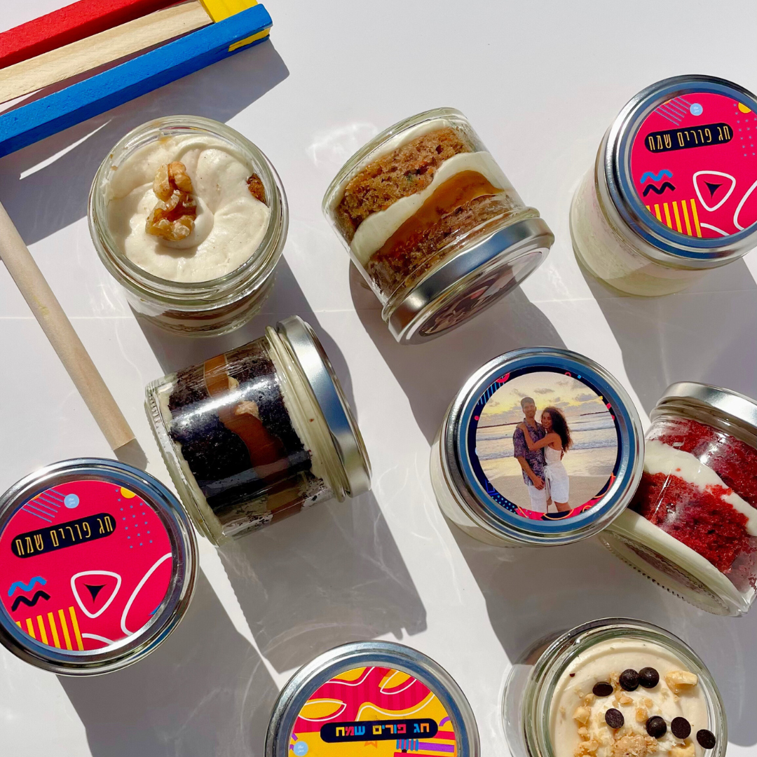 מחפשים את משלוח מנות מושלם? צנצנות עוגת פורים שלנו הן בדיוק מה שאתם צריכים! כל צנצנת מכילה עוגות שכבות בעבודת יד במגוון טעמים מענגים, כולל עוגת רד ולווט, אוראו דרים ועוגת גבינה פיסטוק. צנצנות העוגה שלנו כשרות תחת השגחת רבנות תל אביב (ומכילות מוצרי חלב שאינם חלב ישראל).